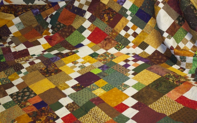 After a busy career in the medical field, sometimes working two jobs, Linda Wood knew she wanted to quilt upon retirement. When she moved to Chiloquin in 1999, Wood put up a notice on a community bulletin board; she asked those interested in quilting to a meeting. Thirty-five women showed up, and they formed two groups: one that met weekly, and one that met monthly. The weekly group continues today as the Chiloquilters, whose members interact together as quilters and friends. Besides making group quilts for community charities, Wood makes quilts for her family, including her children, grandchildren, and great-grandchildren. She has also taught grandchildren and great-grandchildren to quilt. On an extended cross-country trip with her husband, Wood visited over 90 quilt shops. Along the way, she purchased fabrics for and worked on a quilt she calls her “trip quilt.” Its “Winding Road” pattern documents the many interesting places, attractions, and scenery the couple saw during their trip. Wood has a knack for her “scrappy” colorful quilts, an older traditional style that involves putting together many different fabrics into one quilt. She is constantly working on projects and estimates she’ll have to live to be 104 to make all the quilts she has planned.