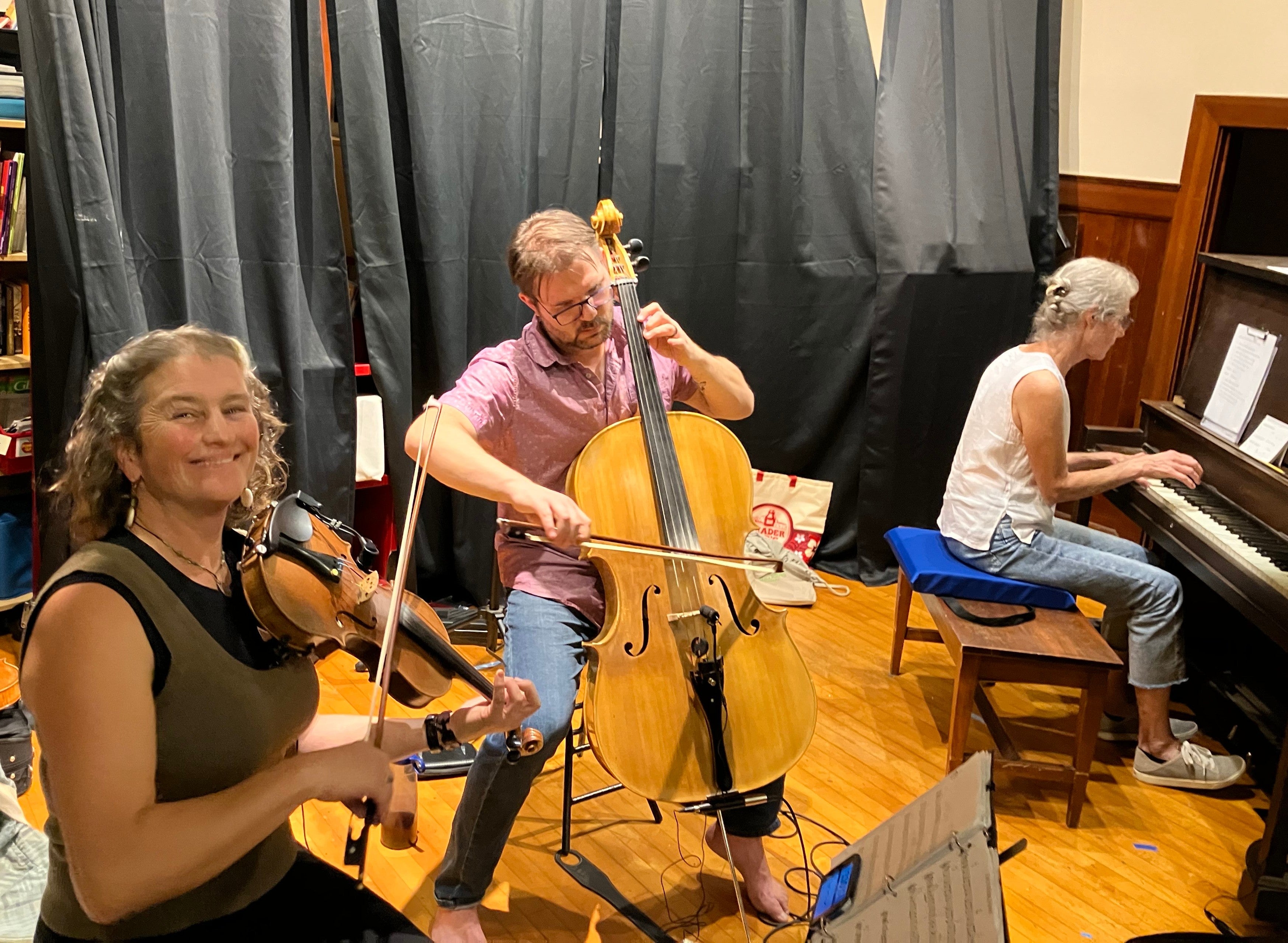 Shari Ame is an Irish and Appalachian fiddler, teacher, and contra dance musician. She has always wanted to be a fiddler, and started her career on classical violin at age 9. Her experiences at the Lark in the Morning camp at age 14 persuaded her to take up Irish fiddle. She played throughout her time at Reed College in a session, (seisúin in Irish) and years after graduation formed a Celtic session in Corvallis, which gathered at Imagine Coffee in Philomath. Since 2001, Shari has been teaching traditional fiddling in both Irish and Appalachian Old-Time styles, in which she emphasizes learning by ear without sheet music and learning to play in sessions with other performers. She also teaches Scottish, Contra Dance, Swedish, and some Klezmir styles of fiddling. Shari also specializes in cross-tuning, an alternative style of tuning for string instruments, and crooked fiddle tunes that disrupt traditional rhythm. She teaches at the Troubador Music Center and Fingerboard Extension. She has also played in several contra-dance bands, including Three-Fingered Jack, Broken Top, Treehouse, and now the OverTones. As a 2022 Traditional Arts Apprenticeship awardee, Shari apprenticed with John Meade, learning traditional Appalachian tunes in the oral tradition.